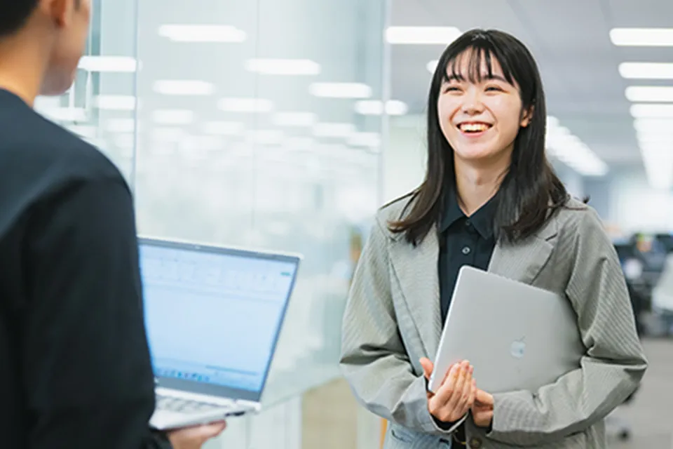 私は情報系出身ではないため、入社して間もない頃は分からないことだらけで右往左往しておりました。そんな時、職場で多くの上司、先輩社員が難しい業務知識について要点をかみ砕いて教えてくれたり、作業の進め方について相談にのってくれました。そういったサポートの手厚さや面倒見の良さが、とても働きやすいと感じます。