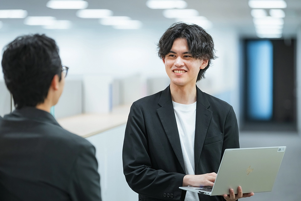 情報系の専門学校を出たとはいえ、実際の業務でのシステム開発となると、ルールがしっかり決まっているのでわからないことが多々ありました。また、社会人としての立ち振る舞いなども間違った認識をしていたこともありました。そのたびに先輩社員に質問したり、アドバイスをもらいながら学び、吸収していきました。なので、この一年半で学んだことは多く、成長しているなということが顕著にみえてやりがいを感じています。